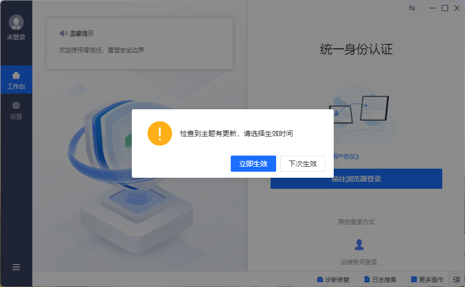 VPN 零信任系统(新版VPN)使用说明 为进一步提升校园网络安全防御能力,同时方便居住在校外或出差到外地的师生访问校园网内网资源(如正版系统、图书馆数字资源、内网系统等),学校新建了零信任系统。拟于2025年9月30日启用零信任系统。 零信任系统可以电脑端和移动端访问使用,校内师生可通过统一身份认证账号密码登录,服务器、网络设备运维人员通过单独开通的账号(运维账号)访问系统。下面介绍使用方法 一、电脑端下载安装办法 1、访问地址:https://sslvpn.ctbu.edu.cn 2、首次使用时,打开此网址会自动弹出客户端下载窗口: 3、下载后点击”立即安装“: (注意:如果电脑上有旧版vpn客户端,请先卸载后再安装新的客户端) 4、安装完后会自动运行,若检测到有主题更新提醒时,选择“立即生效“; 5、 在“设置”界面,确定接入地址是:https://sslvpn.ctbu.edu.cn 6、在统一身份认证登录页面,单击“前往浏览器登录”: 7、输入统一认证平台(信息门户)的账号与密码: 8、验证成功后,桌面右下角会弹窗提示上线成功, 9、此时点击工作台上的“校园门户”图标可访问门户内的各系统; 如果想访问更多校内资源,请直接在浏览器地址栏中输入相应网址,就可以访问。 注:如果您想访问服务器、网络设备等资源,请在翠湖智办搜索”信息系统软硬件部署及集成业务”,找到“VPN账号申请”,申请相关账号。 10、以后使用时有三种打开方法: a.直接在浏览器地址栏中输入:https://sslvpn.ctbu.edu.cn b.通过打开桌面“aTrust系统小图标,在出现的页面中点击“前往浏览器登录”; c.在客户端登录页面点“企业微信”后扫码登录。 二、移动端下载安装方法 1、在对应的应用商店里搜索“aTrust”或“零信任”,下载aTrust客户端。 2、安装后打开,点击桌面的"aTrust"小图标,输入服务器地址:https://sslvpn.ctbu.edu.cn 3、单击“连接”后,在弹出的页面中输入统一认证(信息门户)的账号密码,即可连通。 三、注意事项 1、由于系统支持的同时在线人数有限,使用后请及时退出。退出方法:右键点击桌面右下角托盘中的小图标,单击“退出客户端”。 2、在使用vpn时,请关闭相关的在线视频、大文件在线下载类应用,确保访问流畅; 3、使用过程中如出现问题,请通过企业微信联系信息技术中心梁力源,Email:liangly@ctbu.edu.cn