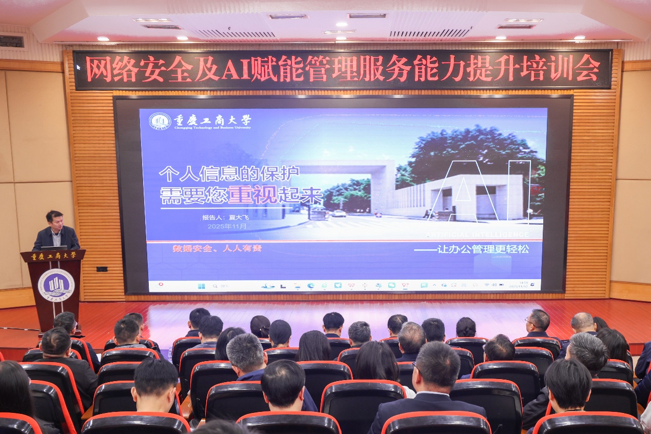 我校举办“网络安全及AI赋能管理服务能力提升”专题培训会 日期:2025年11月13日 15:28阅读:次 为全面提升学校网络安全防护能力,筑牢安全防线,深化AI赋能,助力学校数字化转型迈上新台阶,2025年11月12日下午,我校在博智楼7200学术报告厅成功举办“网络安全及AI赋能管理服务能力提升”专题培训会。本次培训由信息技术中心牵头,党委宣传部、党政办公室协同策划组织,校党委常委、副校长田双全出席会议,各学院、部门信息化工作分管领导、联络员、办公室主任及信息技术中心全体人员等近150人参加培训。会议分为两个阶段,校党委委员、信息技术中心主任田昌鹏主持培训会。 第一阶段为部门工作交流环节。首先由田昌鹏代表信息技术中心作2024-2025年度学校网络安全工作报告,他系统回顾了过去一年学校在网络安全制度建设、技术防护、应急响应及数据安全等方面取得的成效与存在的不足。 然后由田庆刚代表党委宣传部(党委网络工作部)就意识形态和网络舆情相关工作进行了布置与说明。 田双全在讲话中重点强调两个方面:一是网络安全方面,要牢固树立“网络安全无小事”的责任意识,压实各级单位主体责任,强化协同联动,从技术防护、管理制度与人员意识三个层面筑牢安全防线。尤其在数据安全与个人信息保护方面,必须严格执行国家相关法律法规,确保学校网络空间清朗可控。二是AI应用方面,要主动拥抱人工智能技术变革,推动AI在教育教学、管理服务、科研创新等场景的深度融合,以AI赋能提升工作效率和服务质量,助力学校数字化转型与高质量发展。 第二阶段为专家培训环节。西南大学信息化建设办公室副主任夏大飞以《数据安全与AI赋能管理服务》为题作专题报告。他结合《个人信息保护法》《数据安全法》等法律法规,深入剖析了多个真实案例,阐明因个人信息泄露引发的安全事件与法律后果,强调数据分类管理、加密技术及权限控制等措施的重要性。夏主任还分享了AI技术在高校管理中的实践应用,如智能问答助手、日程管理智能体、AI辅助文档处理等,生动展示了AI在优化服务流程、提升办公效率方面的广阔前景。 金山软件认证讲师李思彤围绕“WPS AI办公应用技能”开展实操培训,现场演示了AI在文字润色、PPT生成、数据分析和图表制作等方面的强大功能。通过“一句话生成PPT”“一键数据分析”“智能排版设计”等案例,她生动展示了如何利用AI工具实现高效办公,有效提升了参训人员的AI应用能力。 本次培训是学校持续推进网络安全体系建设、强化AI技术赋能管理服务的重要举措。下一步,学校将继续完善网络安全与数据管理制度,加快信息系统迁移与数据治理,加强专业人员队伍建设,深化师生网络安全意识教育,全面提升学校数字化治理与服务能力,为高质量发展注入新动能。 下一条:我校召开二级学院网站与教师主页平台对接工作推进会 【关闭】